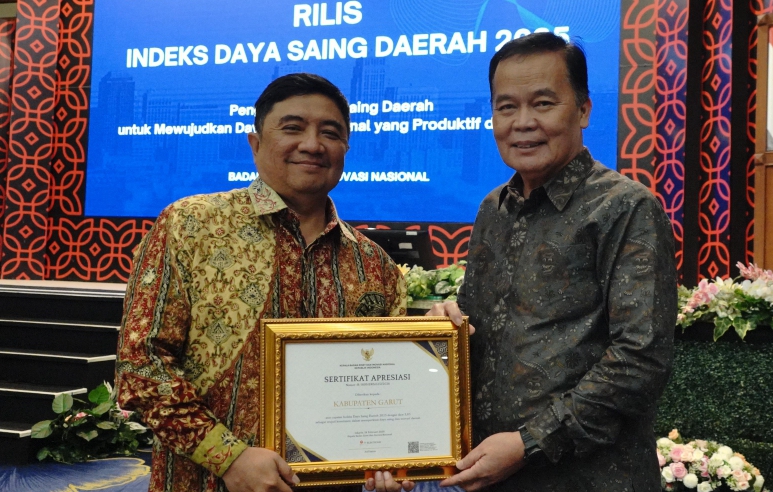 Sebelumnya dalam acara Rilis Indeks Daya Saing Daerah (IDSD) Tahun 2025 yang diselenggarakan oleh BRIN, Kabupaten Garut meraih penghargaan IDSD melalui perolehan nilai indeks sebesar 3,85.